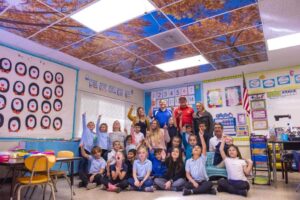 Leslie Snyder, a middle-school teacher in California explains that the ceiling mural is more than an environmental change in the classroom. It’s also a cultural change. “Students linger in the classroom now. They look up and smile. The space feels humane in a way that matters every single day.”